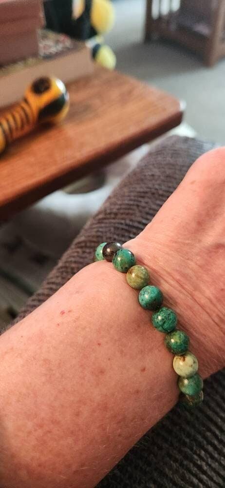 Worn as a stretch bracelet, Phoenix Stone helps balance the heart and throat chakras, fostering resilience, clarity, and renewal. Its energy inspires harmony and courage while serving as a meaningful reminder of transformation.
